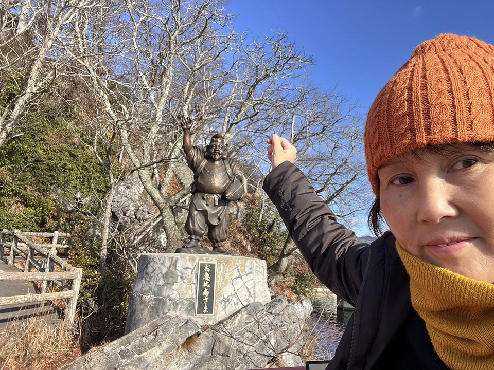 観光所を出発して岸壁沿いに船を見ながら浮見堂の恵比寿様にご挨拶。
