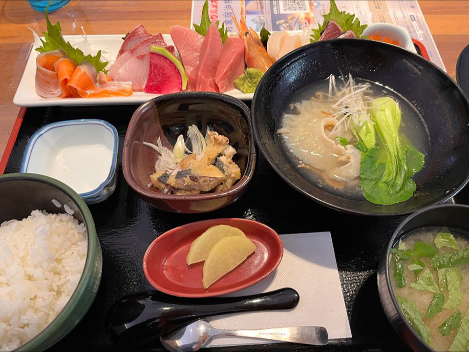 自転車を返して同じ建物のレストランで海の幸盛りだくさんの「モネ御膳」をいただいた。