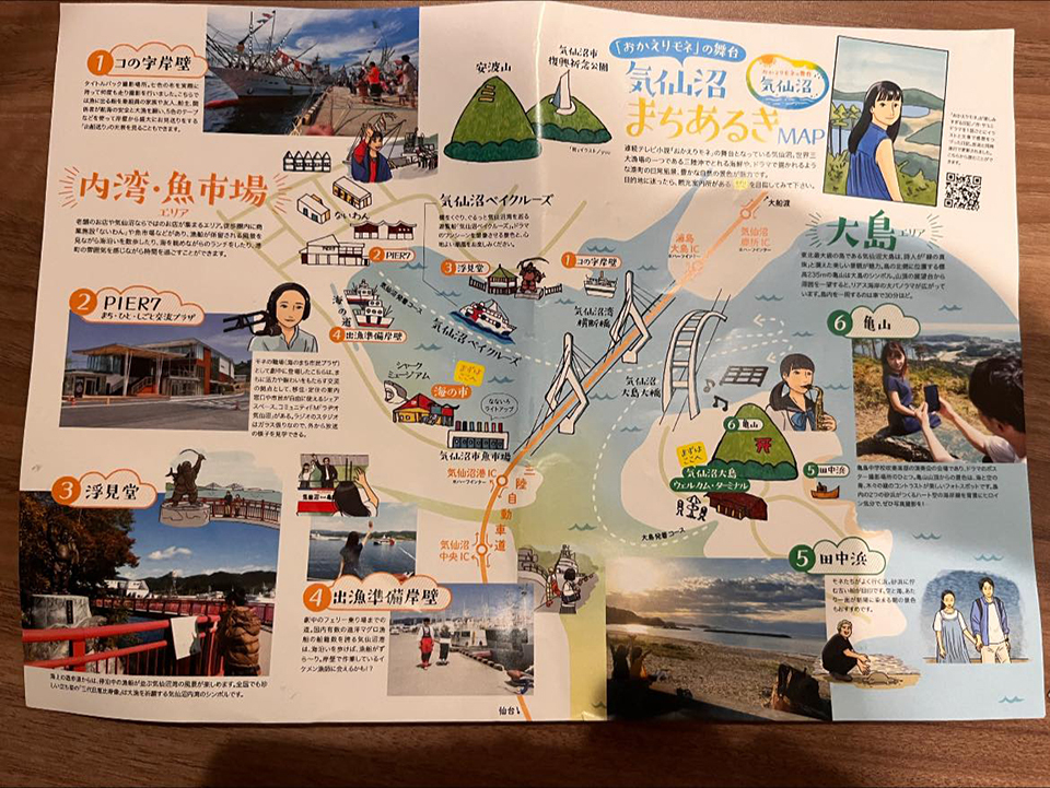 しかし、お帰りモネ関連の場所ならたくさんあるので、ぜひ行ってみてくださいと勧められ、観光マップに印をつけて、大島までのルート、大島での観光ポイントを教えてくれた。