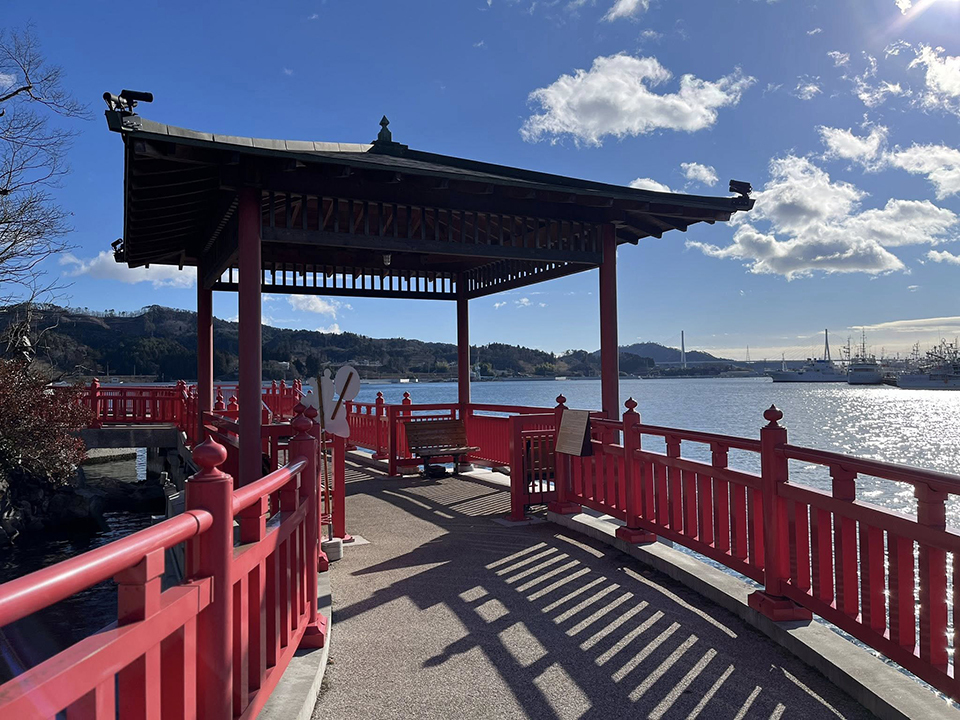 観光所を出発して岸壁沿いに船を見ながら浮見堂の恵比寿様にご挨拶。